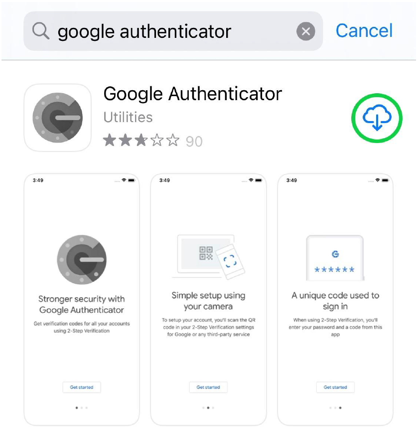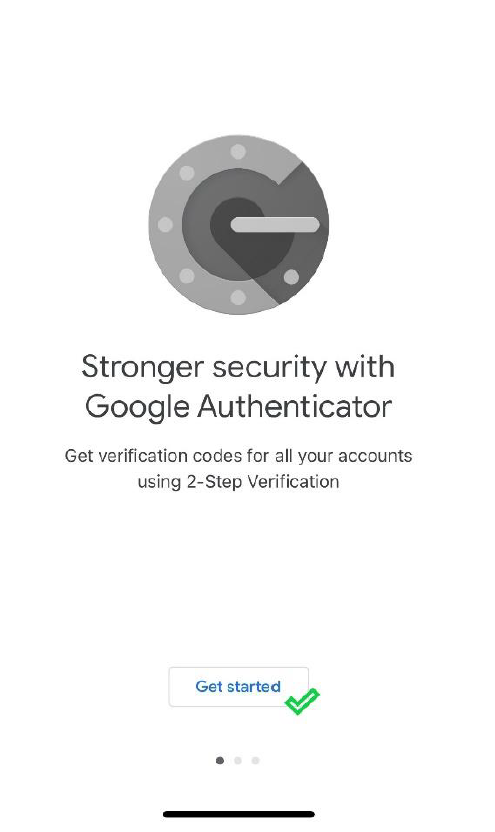 4. หลังจากดาวน์โหลดแอพพลิเคชั่นลงบนโทรศัพท์เรียบร้อยแล้ว กรุณาเข้าแอพพลิเคชั่น Google Authenticator และกด Get started เพื่อเริ่มเชื่อมต่อ หลังจากนั้นให้เลือก Scan a QR code และสแกน QR โค้ดจากขั้นตอนก่อนหน้านี้เพื่อเชื่อมต่อบัญชี Movaci ของคุณ